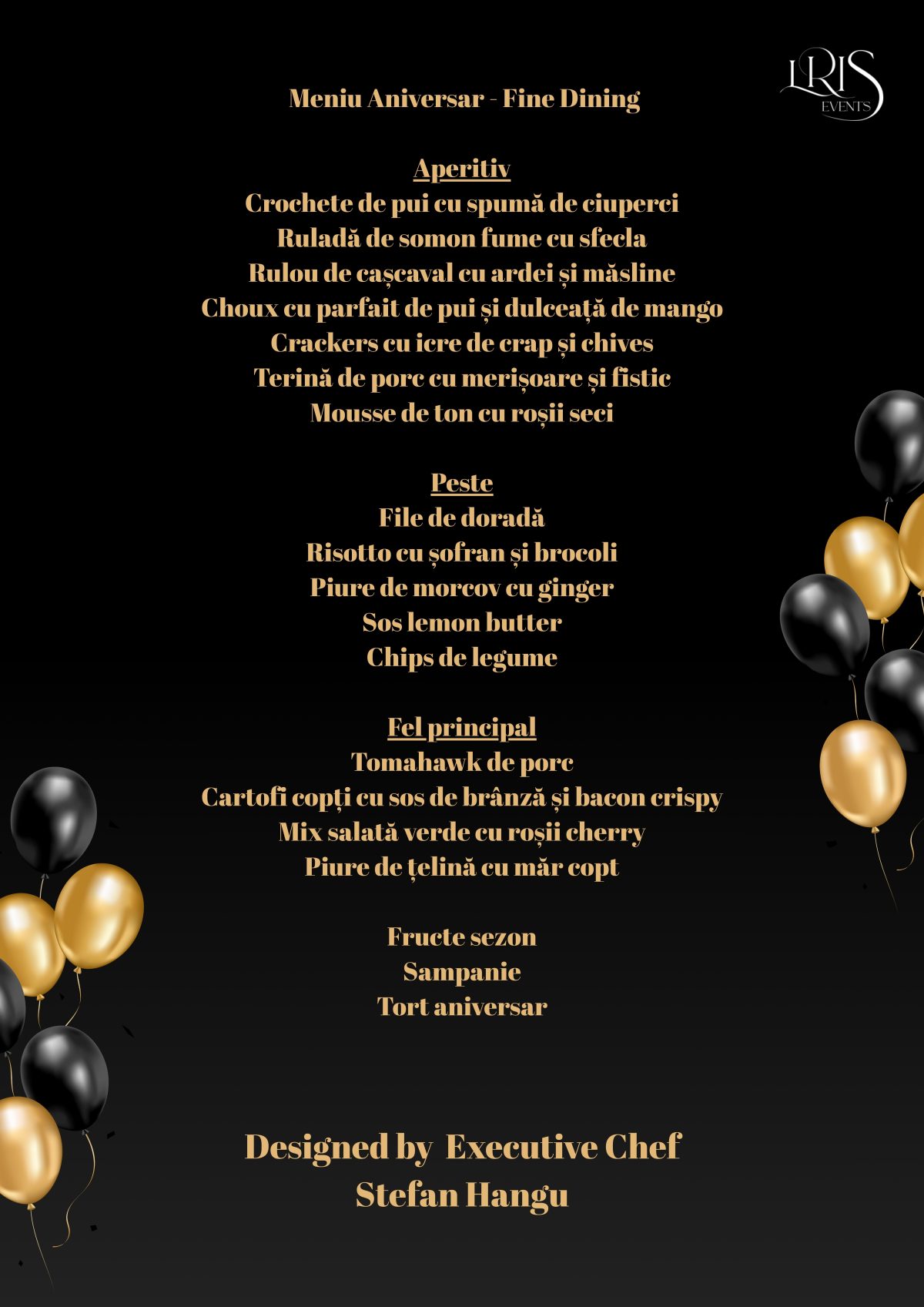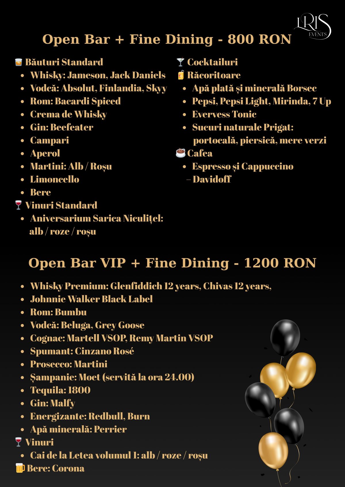 Meniu Fine Dining + Open Bar Standard – 800 lei.