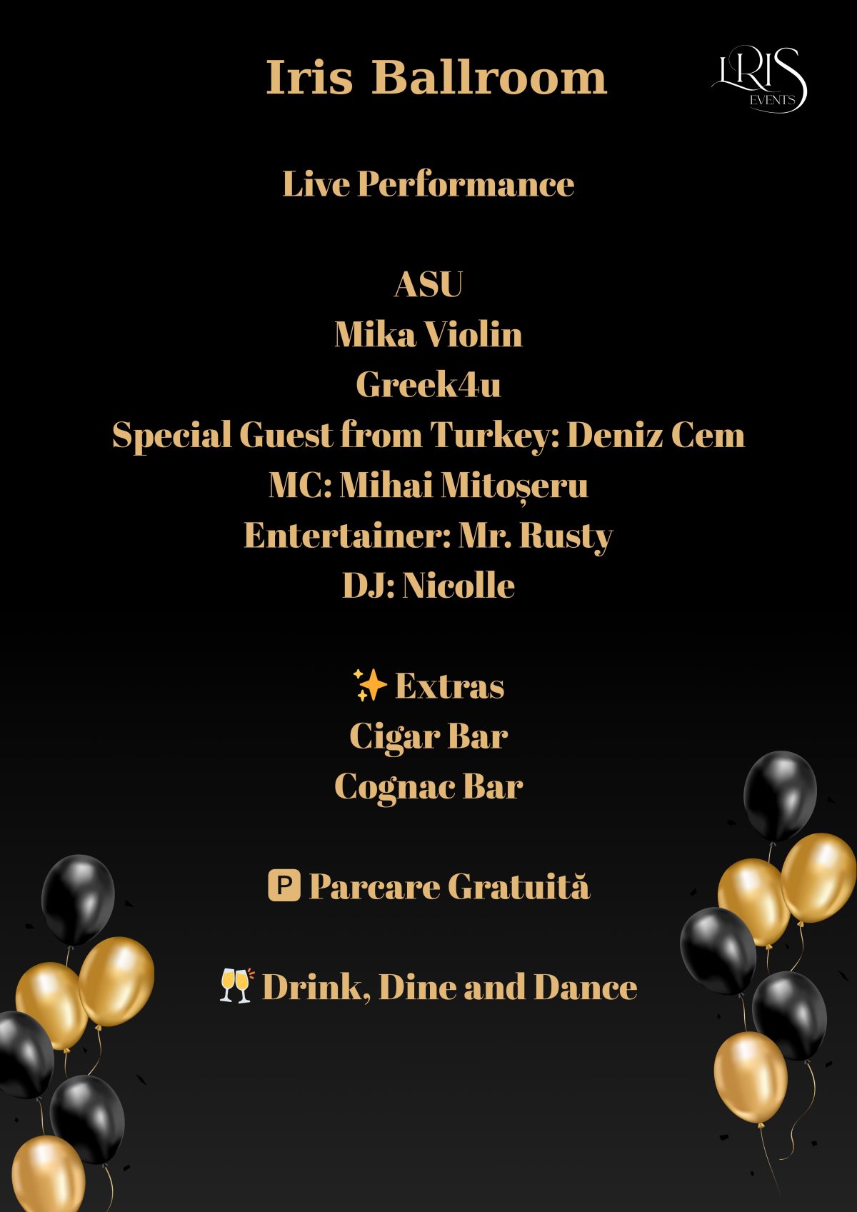 Petrecerea va începe la ora 20:00 în Salonul Rubin din cadrul complexului de evenimente Iris Ballroom, Bd. Poligrafiei nr. 1B, zona Herăstrău / Romexpo.